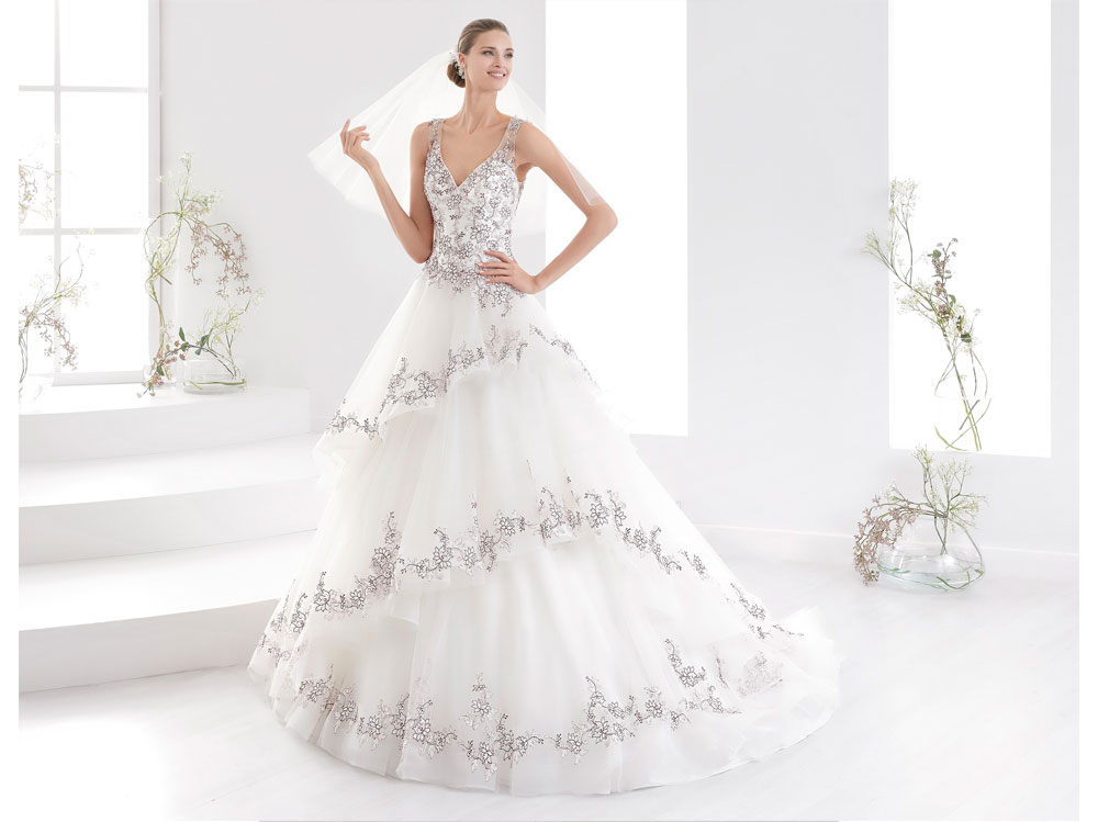 Abiti da sposa con fiori stampati e colorati 2018
