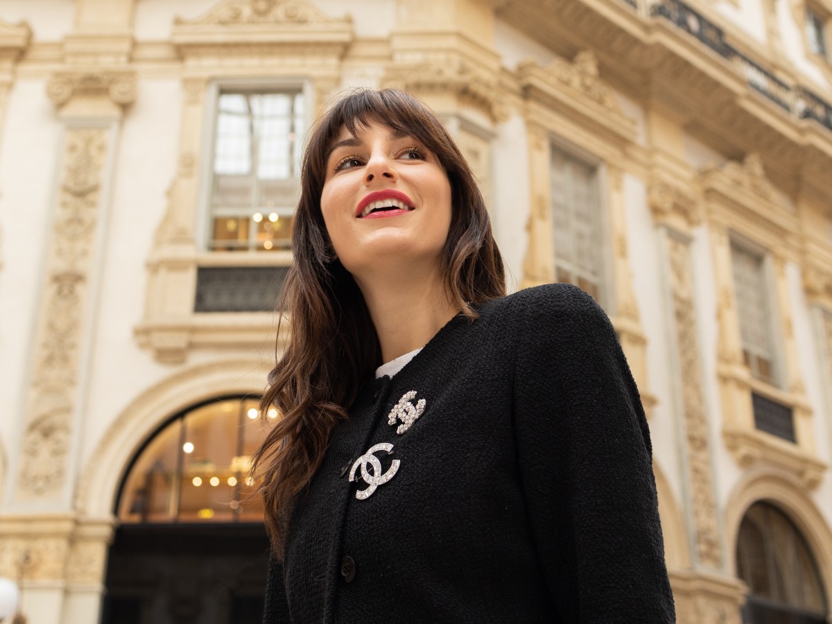 Carlotta Rubaltelli: smokey eyes dorato e labbra rosso rubino scuro — Foto