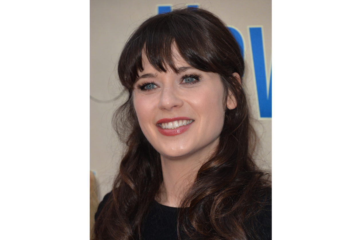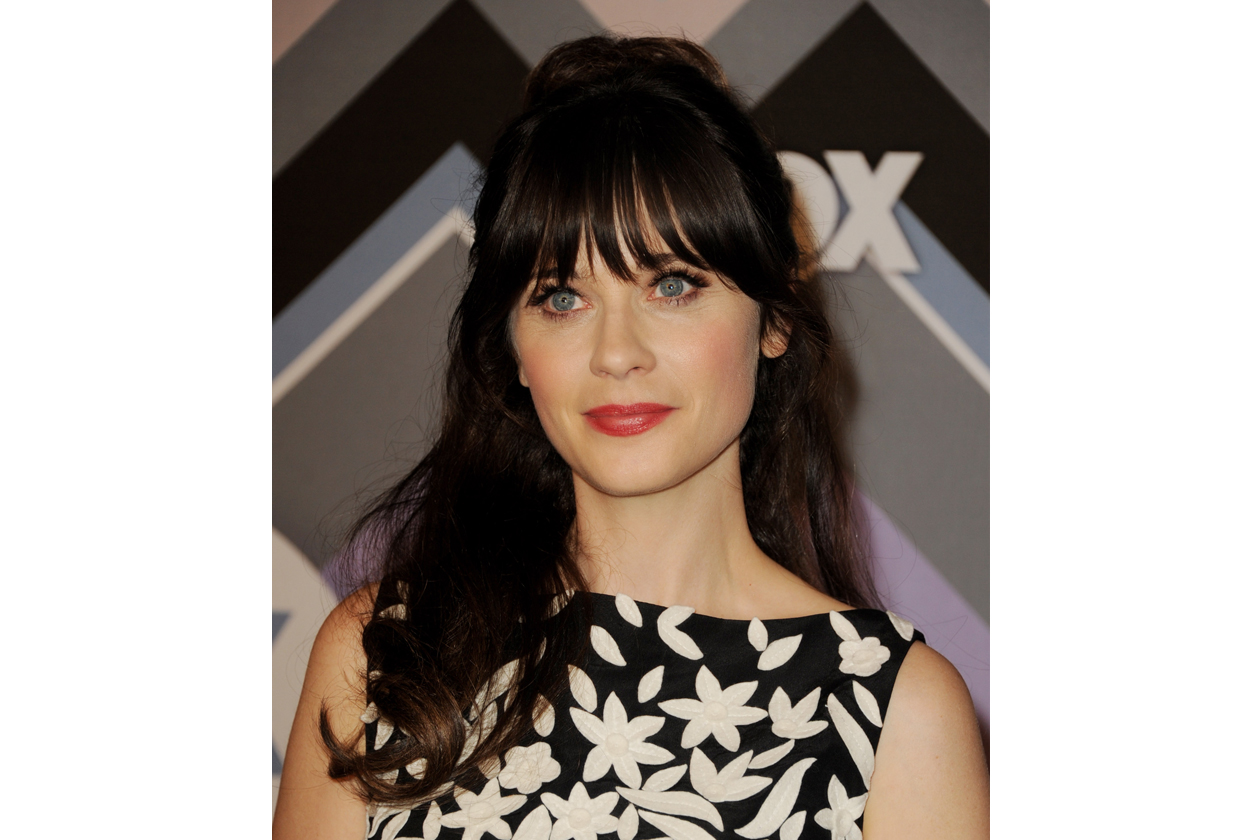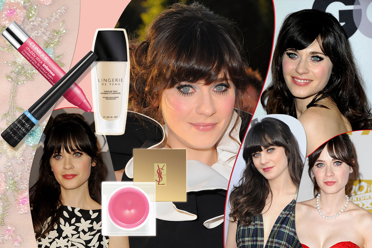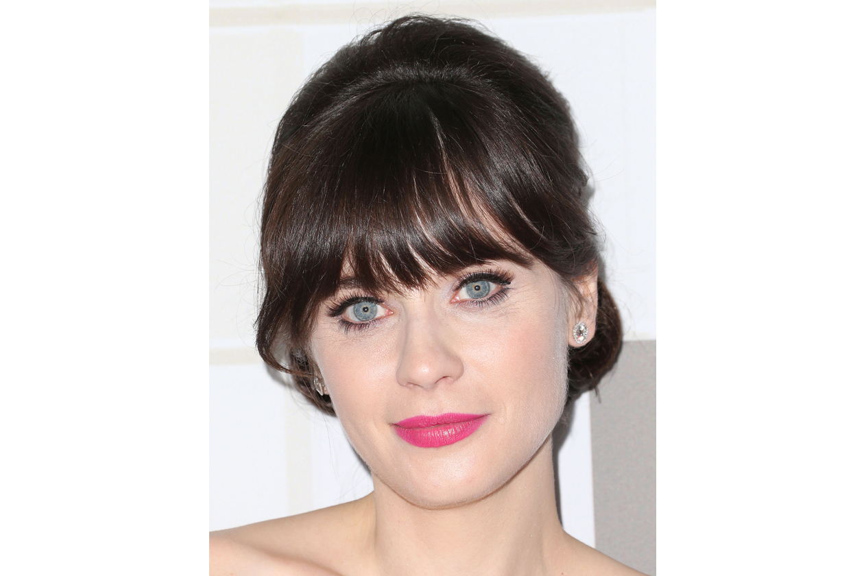 Zooey Deschanel beauty look: occhi da bambola e rossetto rosa