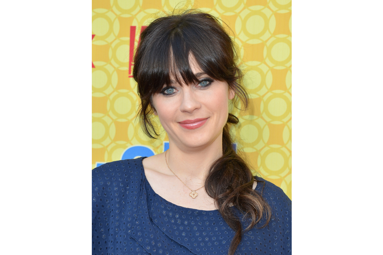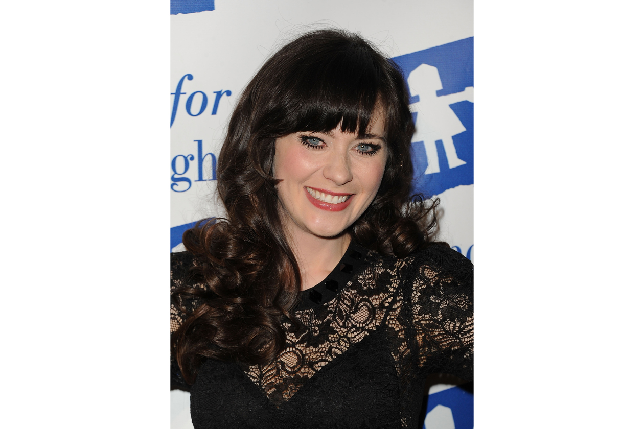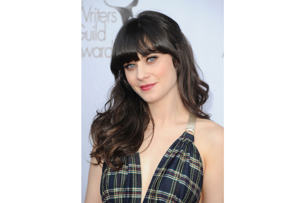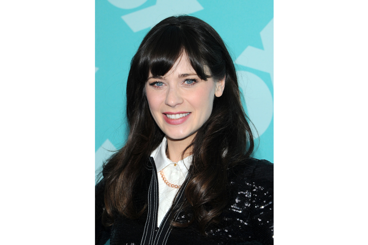 Zooey Deschanel beauty look: occhi da bambola e rossetto rosa