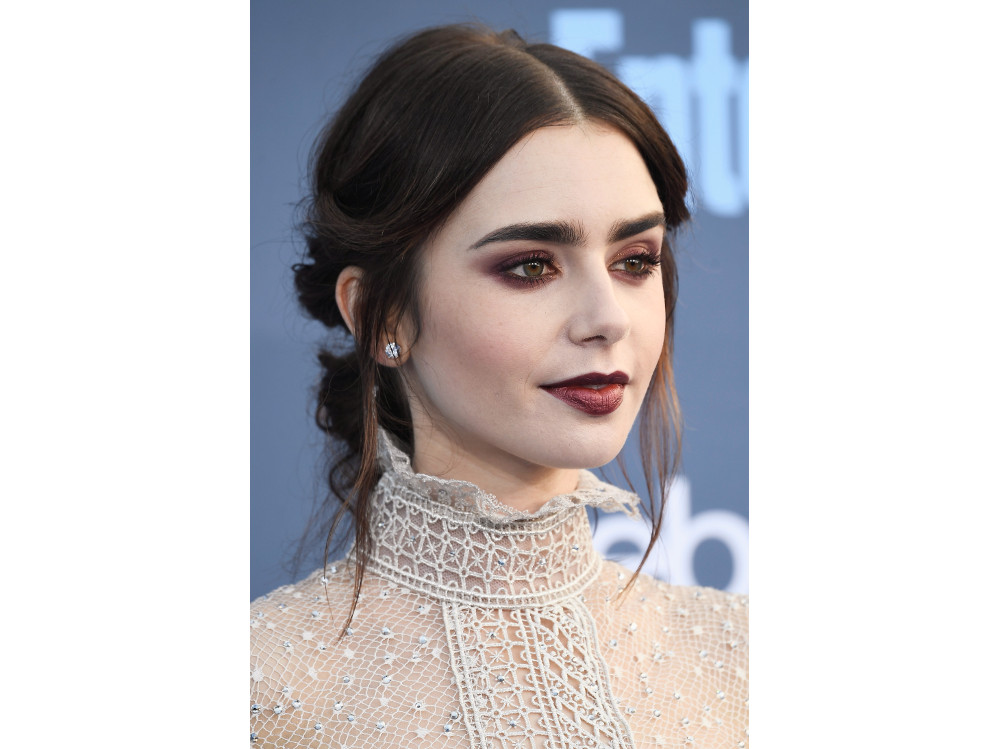 Lily Collins make up: copia il look con smokey eyes bordeaux