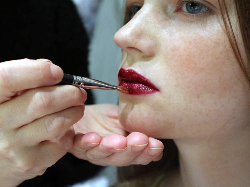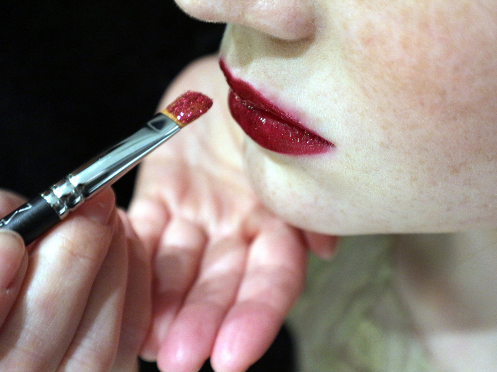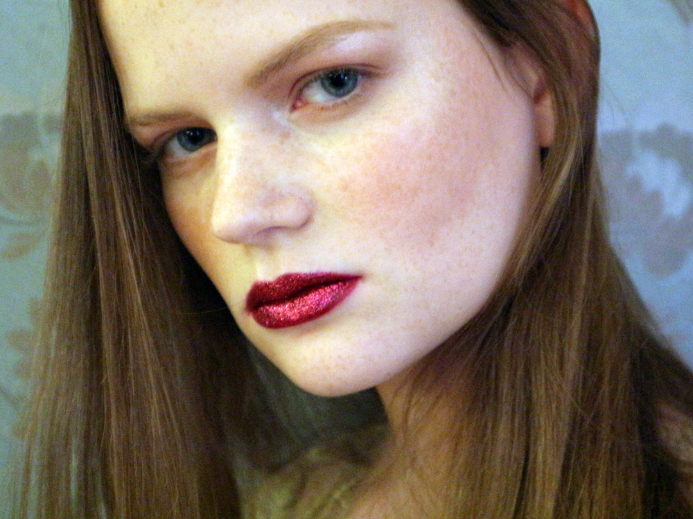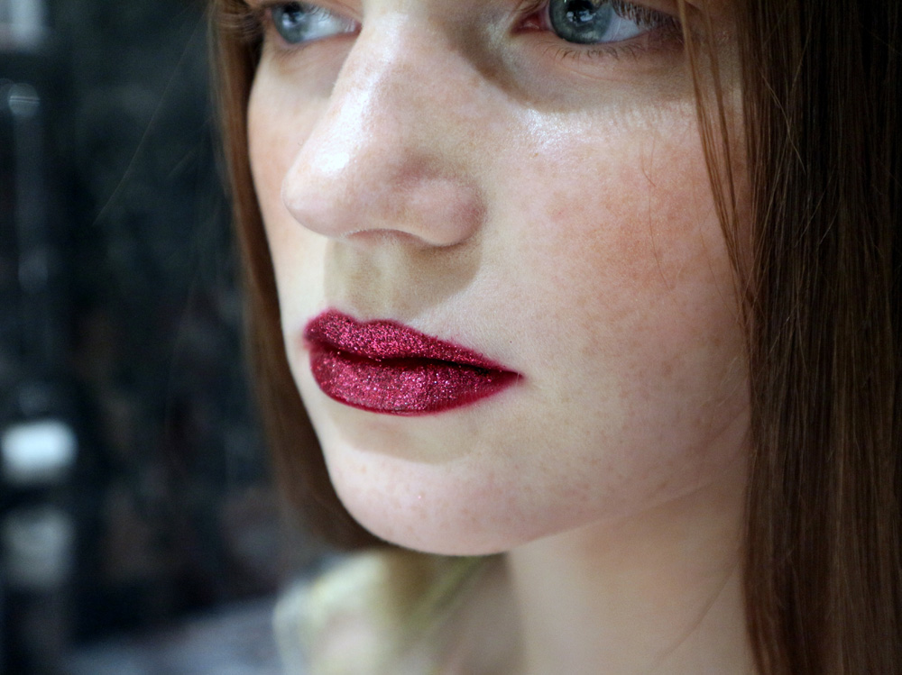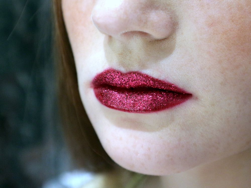 Trucco per Capodanno: labbra rosse glitterate