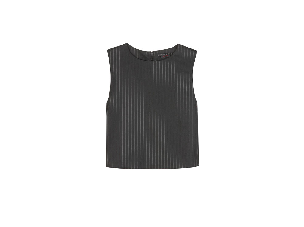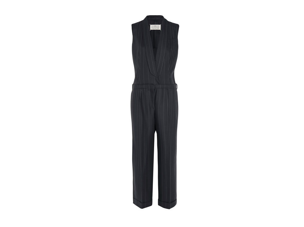 Il look in gessato e giallo di Victoria Beckham