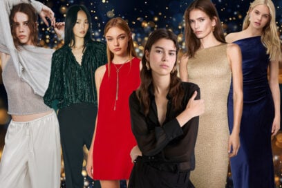 La palette alterna bianco e nero iconici a un rosso vibrante da holiday season e a un castagna caldo, mentre fiocchi oversize e dettagli dorati accendono la silhouette. Una collezione pensata per fluire con grazia dalle feste alla nuova stagione PE26.