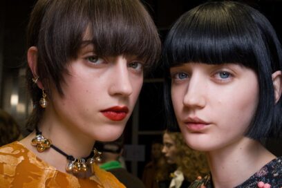 Completi sartoriali, trench e cappotti diventano una seconda pelle, mentre schiene scoperte, tagli senza maniche e aperture improvvise creano una tensione magnetica. Il denim, vero simbolo del brand, torna protagonista attraverso un’interpretazione dell’archivio del 1976: total look in jeans sotto cappotti sottilissimi, giacche aviator e trench ricamati con il logo manoscritto originale. Il colore resta urbano e sofisticato, dai grigi, beige, neri, pann, accesi da tocchi di borgogna e tangerine, mentre i materiali passano dalla lana asciutta al velluto liquido, dal satin bonded alle pelli spazzolate.