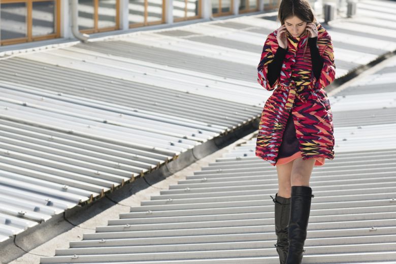 Michela Meni interpreta il nuovo piumino di M Missoni